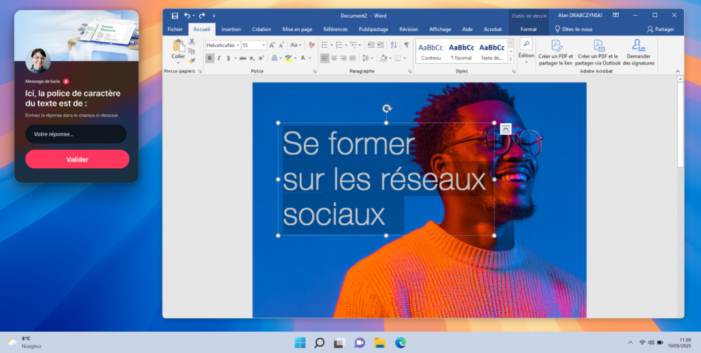 Le parcours couvre l’ensemble des compétences digitales essentielles définies par le référentiel CléA Numérique. Au-delà de la bureautique, les modules abordent des thèmes incontournables tels que la sécurité informatique (adopter les bonnes pratiques, gérer ses mots de passe, se protéger des cyberattaques) ou l’usage responsable d’Internet et de la messagerie (identifier des e-mails frauduleux, respecter la confidentialité des communications). Les apprenants découvrent également comment travailler en mode collaboratif à l’aide des outils numériques modernes : partager et co-éditer des documents en ligne, utiliser le cloud, organiser des réunions virtuelles, etc. Aucun aspect du numérique professionnel n’est laissé de côté : vos apprenants développent ainsi un socle de compétences complet, conforme aux attentes du monde du travail actuel.